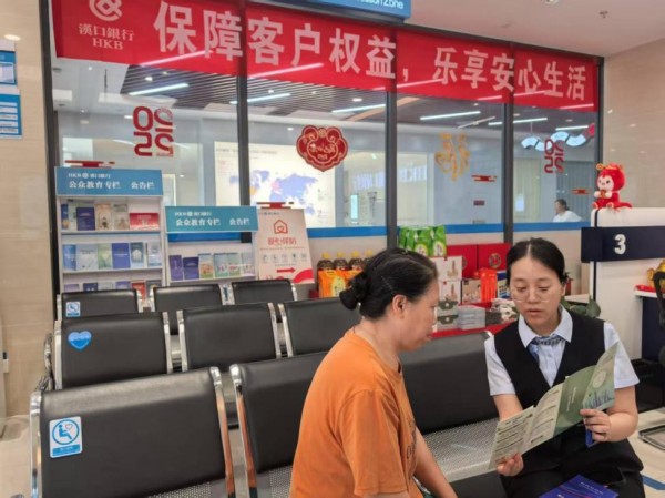 網點工作人員向客戶宣傳金融知識。漢口銀行重慶分行供圖