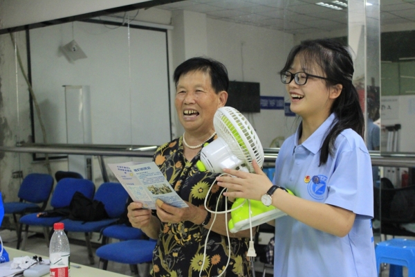 志愿者將修好的風扇送還給老奶奶。重慶理工大學供圖