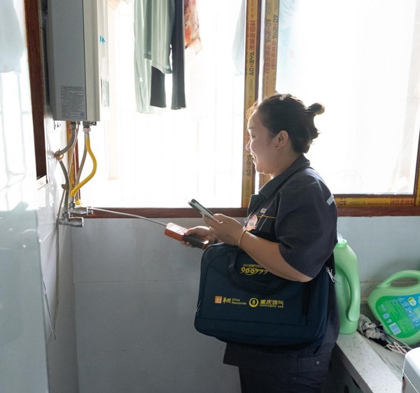“紅巖燃小兵”入戶安檢。重慶燃氣集團供圖