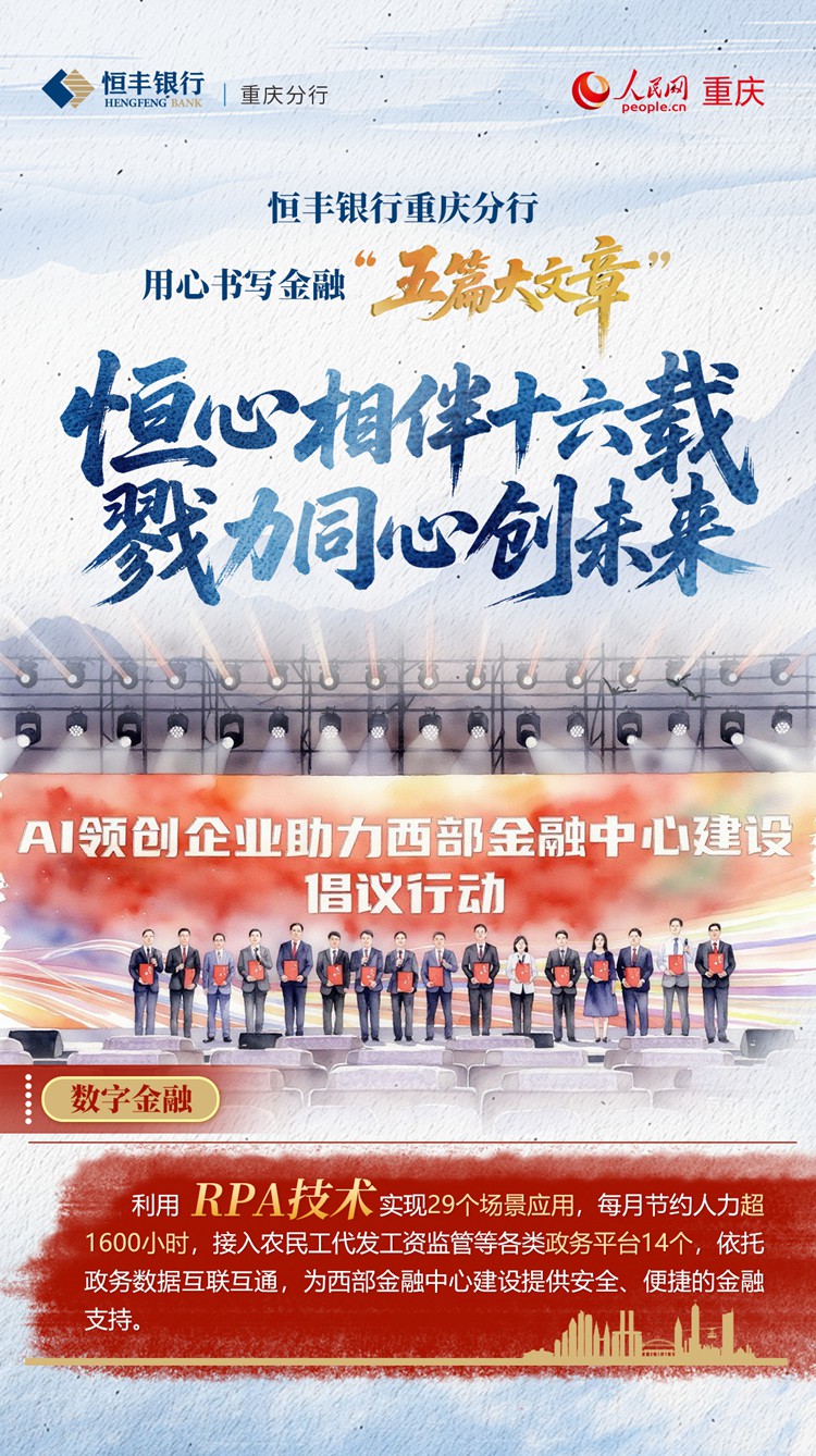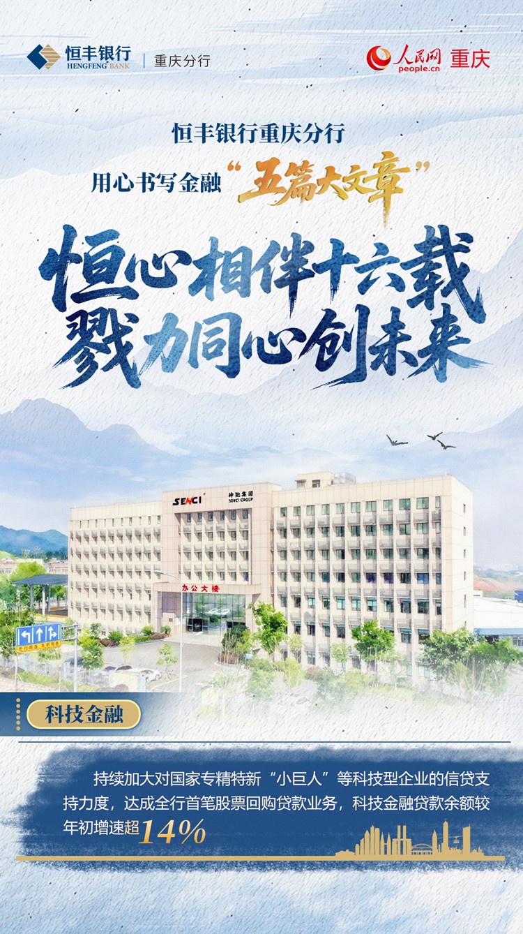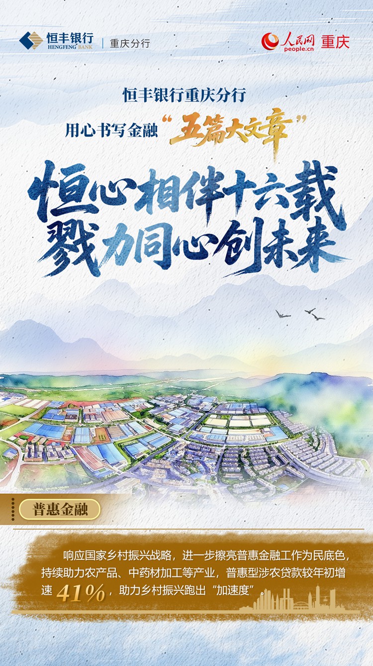 2025年8月7日,恒豐銀行重慶分行將迎來16周年行慶。人民網重慶頻道推出系列海報,展現恒豐銀行重慶分行做好金融“五篇大文章”的舉措與成效。