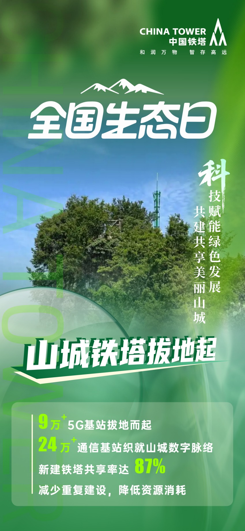 8月15日是全國生態日,重慶鐵塔堅定不移推動能源綠色低碳發展,以科技創新賦能生態保護,以共享模式推動綠色發展,為美麗重慶建設貢獻“鐵塔智慧”和“鐵塔方案”。(重慶鐵塔)