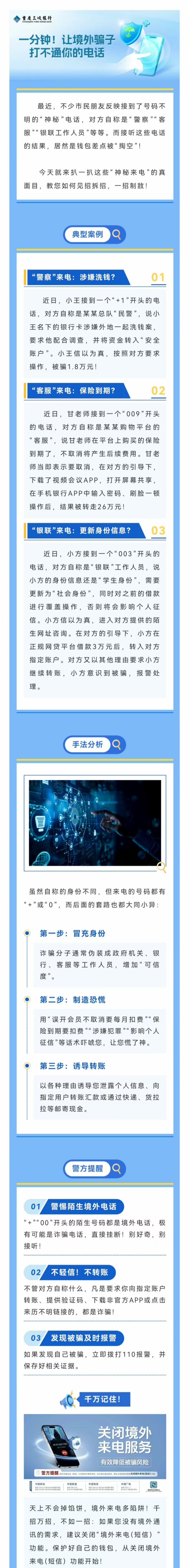 最近,不少市民朋友反映接到了號碼不明的“神秘”電話,對方自稱是“警察”“客服”“銀聯工作人員”等等。而接聽這些電話的結果,居然是錢包差點被“掏空”!重慶三峽銀行以案說險為你揭秘這些“神秘來電”的真面目,教您如何見招拆招。