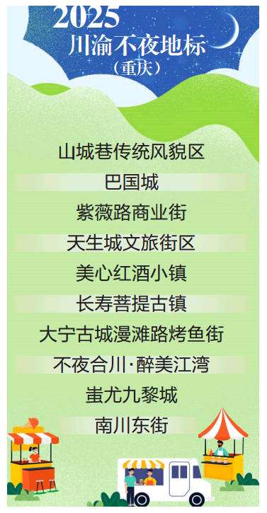 9月23日,記者從市商務委獲悉,首屆“不夜川渝 活力中國”2025川渝城市夜經濟嘉年華活動評選出“2025川渝不夜地標”“2025川渝夜經濟新業態示范案例”。其中,重慶山城巷傳統風貌區、巴國城等10個項目,憑借獨特的夜間消費場景與文化創新力,獲評“2025川渝不夜地標”。