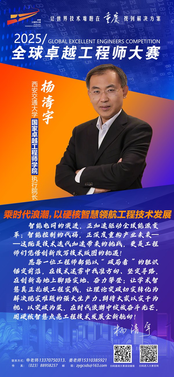 10月15日,西安交通大學國家卓越工程師學院執行院長楊清宇向全球卓越工程師大賽·2025年度發來推介詞:智能電網的演進,正加速驅動全球能源變革;智能控制的代碼,正深度重構產業未來——這既是技術迭代加速帶來的挑戰,更是工程師們憑借創新改寫技術版圖的機遇。愿每一位工程師都能以“破局者”的膽識錨定前沿,在技術迷霧中找準方向、堅定尋路,在創新高地上腳踏實地、奮力攀登;讓學術智慧真正扎根工程實踐,讓理論突破切實轉化為解決現實難題的強大生產力。期待大家以實干為帆、以突破為槳,在時代浪潮中綻放奮斗光芒,用硬核智慧點亮工程技術發展全新航向!